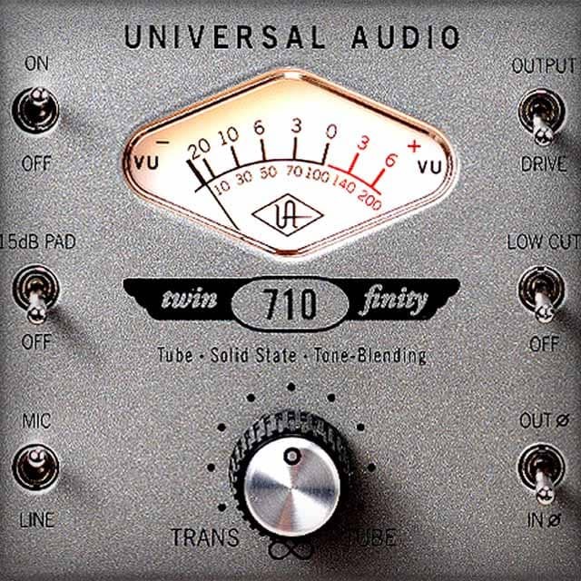 The award-winning 710 Twin-Finity™ is a radical UA mic preamp design that combines both the classic retro warmth of tubes with the transient bite of solid-state, all in a 2U, half-rack unit. The 710 was created specifically to add the tonal versatility and sonic inspiration missing from generic audio interface preamps.