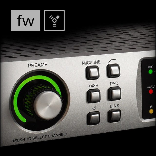 Apollo FireWire features four Unison-enabled mic preamps, letting you track through exacting mic preamp emulations from Neve, API, Manley, and Universal Audio. An Apollo exclusive, Unison technology nails the tone of these sought-after tube and solid state mic pres — including their input impedance, gain stage “sweet spots,” and the component-level circuit behaviors of the original hardware.