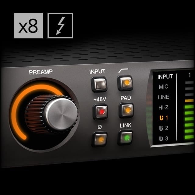 18 x 24 Thunderbolt 3 audio interface with class-leading 24-bit/192 KHz conversion (backwards compatible with Thunderbolt 1 & 2 on Mac)