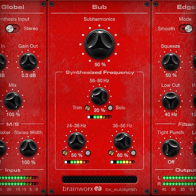 The bx_subsynth Subharmonic Synthesizer plug-in’s Edge section lets you compress and saturate your source — a handy feature for shaping subharmonic content or building explosive transient peaks. And with Smooth or Harsh modes, Squeeze and Drive, as well as Low/High-Cut filters, you’re afforded an unprecedented amount of control over subharmonic information.