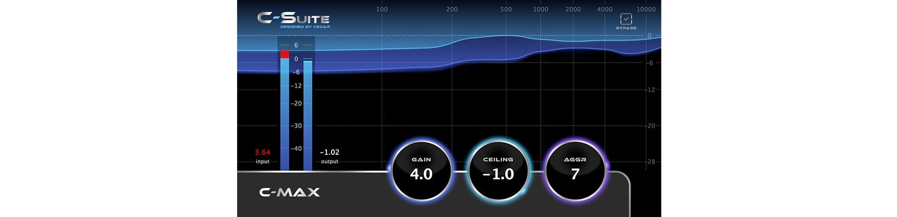 Developed by C-Suite Audio™ exclusively for Apollo interfaces and UAD hardware, C-Max Limiter gives you ultra-transparent limiting to extreme maximizing and distortion effects, with three simple controls.