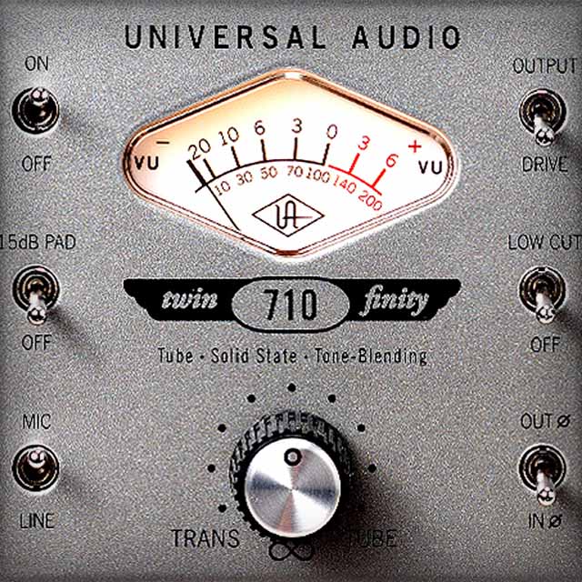 A radical UA design that combines the retro warmth of tubes with the transient bite of solid-state. Blend between the two for an infinite range of unique preamp tones.