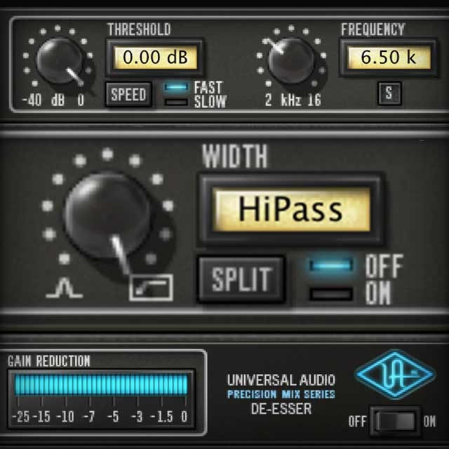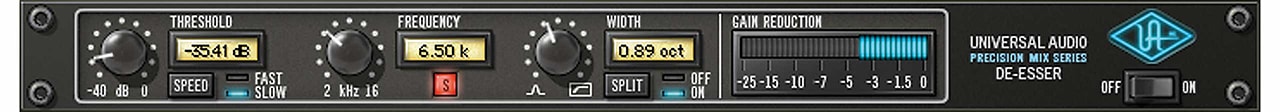 It's a great plugin, but be sure to take your time and find the exact sweet spot / sweet ratio between the bandwidth and the threshold. I owned this plugin for a very long time but wasn't able to get decent sounds out of until I discovered the careful balancing act between the threshold and bandwidth. Now I love the plugin. It's a very quick solution to a common sibilance problem. I feel like even at the sweet spot, however, it darkens the tracks a bit much. Use it along with UAD Precision Enhancer kHz and you have a winning combo.